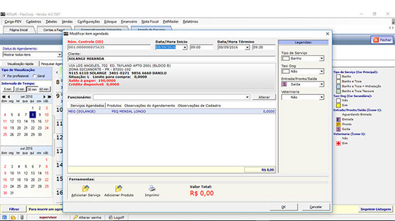Agendamento de Banho e Tosa com emissão de comanda de serviço.