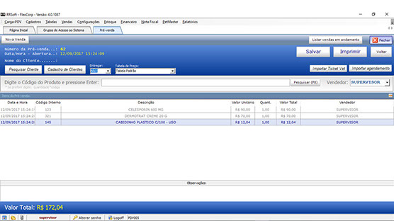 Tela de Pré-Venda para dar maior agilidade nos dias de maior movimento.